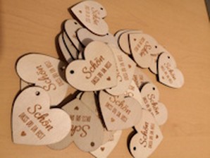 Valentinstag 2026: Holzherz-Anhänger "Schön, dass du da bist" (ca. 4x5 cm), da sprudelt Amore.