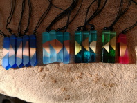 Die Teilnehmer erhalten eine Kette mit einem Anhänger aus Harz und Holz, der mit Kraft aufgeladen ist.
